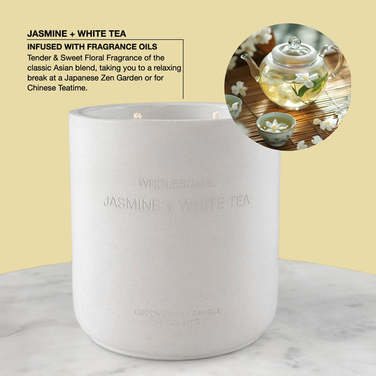 Jasmine + White Tea Scented Non Toxic Candles - 100% Natural Coconut Wax Candle