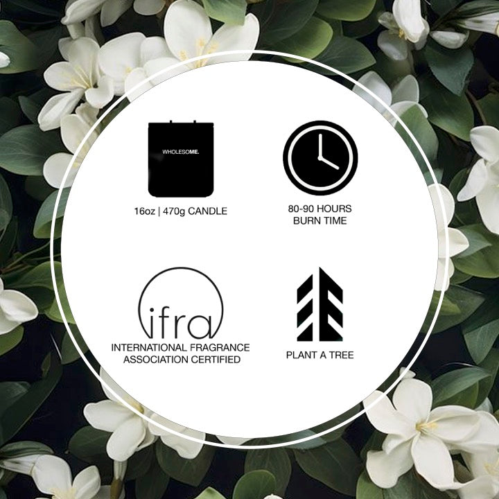 - CLEAN NON TOXIC & LONG LASTING : Our 2 wicks natural candles are made with 100% cotton wicks & 100% Pure Coconut Wax offering a clean & even burn, up to 90 hours. The Jasmine + White Tea Candles are infused with IFRA Certified Fragrance Oil. Our vegan candles are paraffin free.
